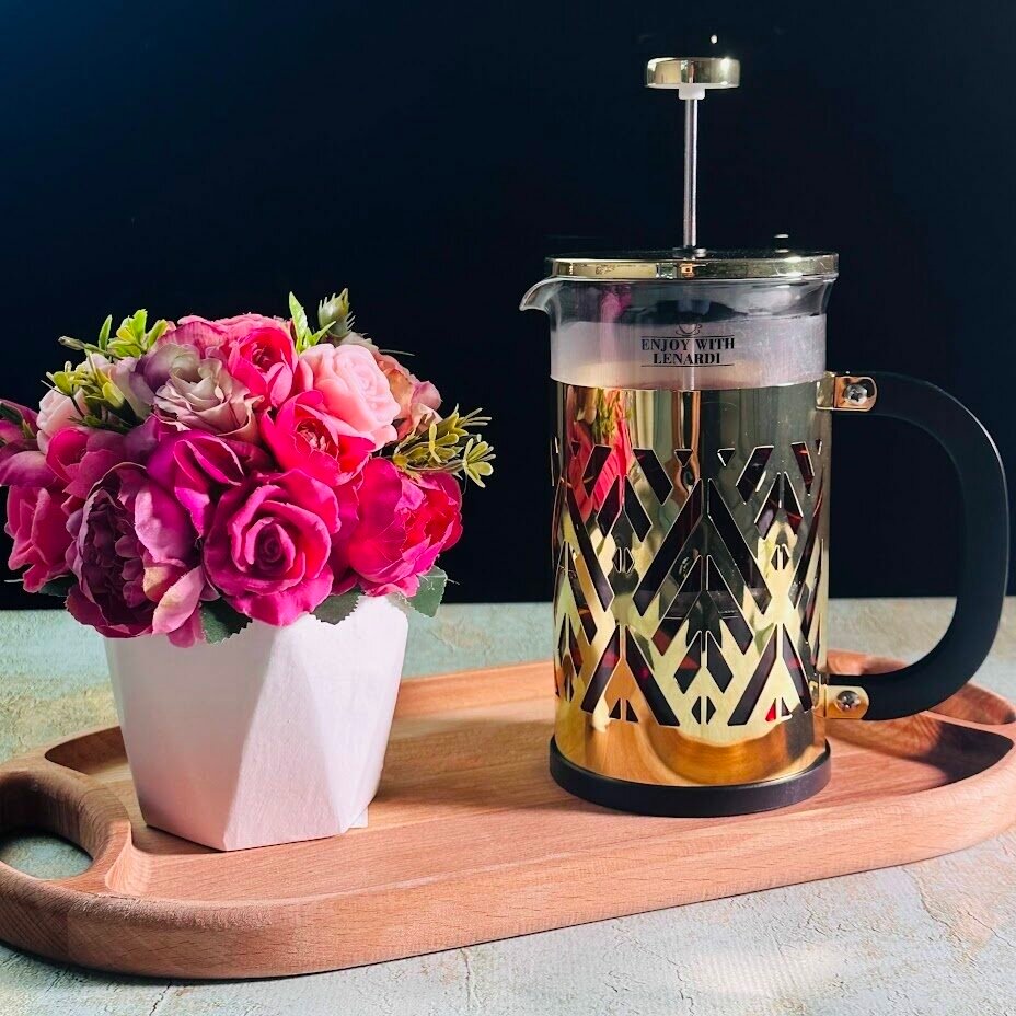 Френч-пресс "Lenardi" 1000 мл, золотистый, стекло, мытьё в посудомойке