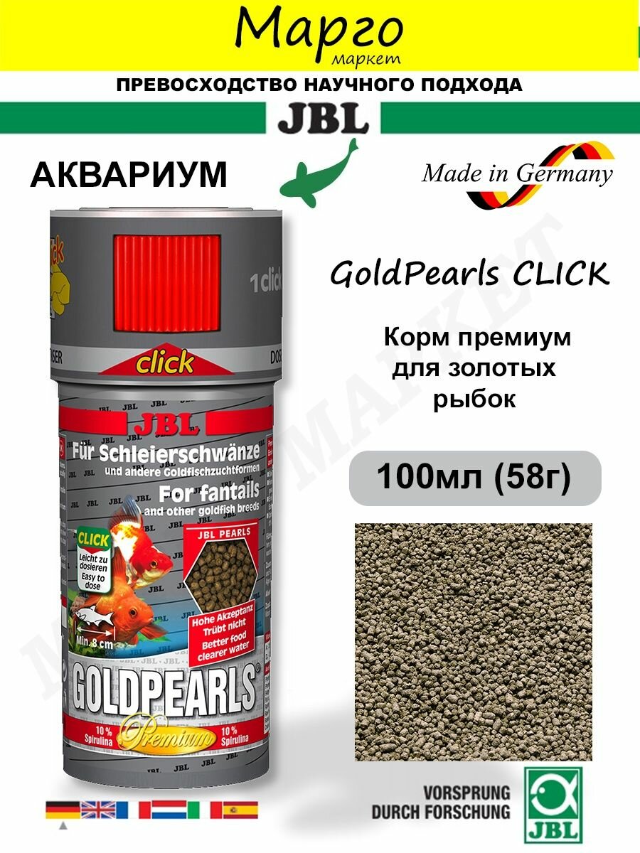 JBL GoldPearls CLICK - Основной корм премиум для золотых рыбок, гранулы, 250 мл (145 г