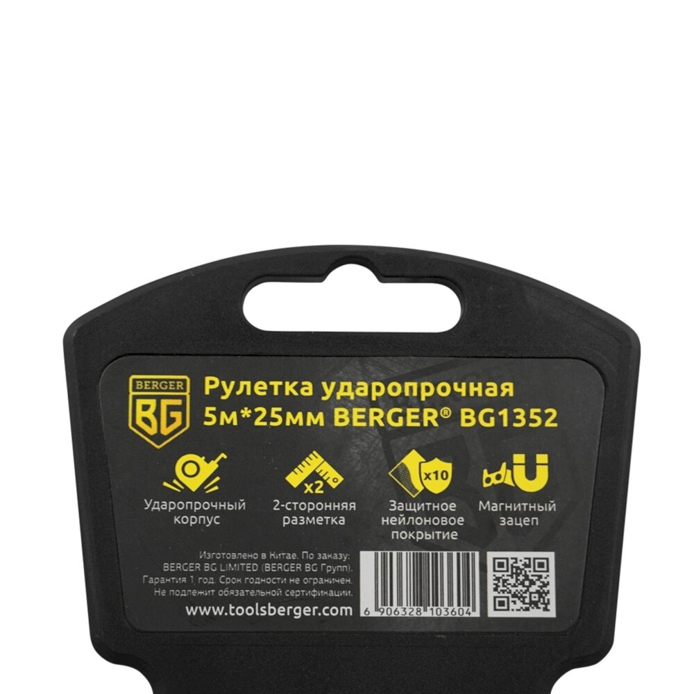 Рулетка ударопрочная Berger BG 1352, 25мм, 5м.