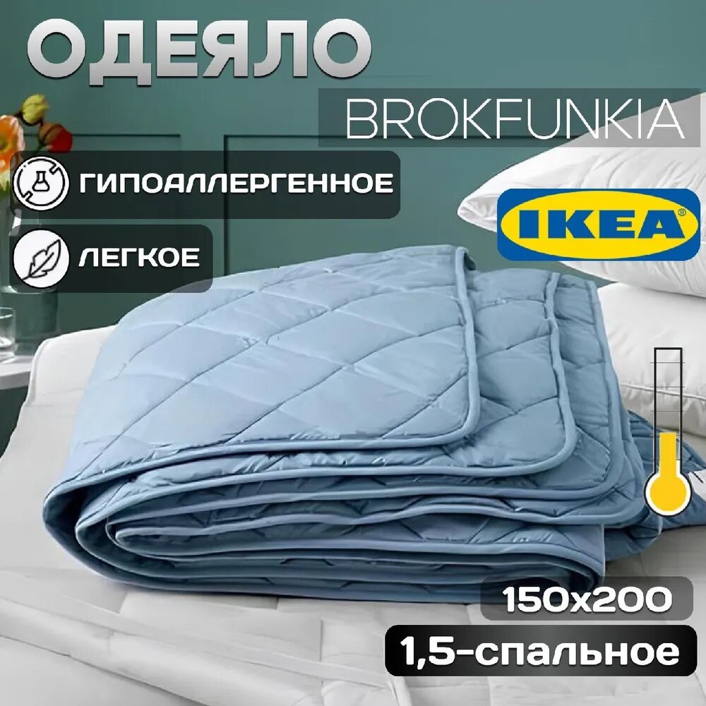 Одеяло ИКЕА BROKFUNKIA , 1,5 спальный, легкое, гипоаллергенное, голубое полиэстер 100%, 150x200 интересное: