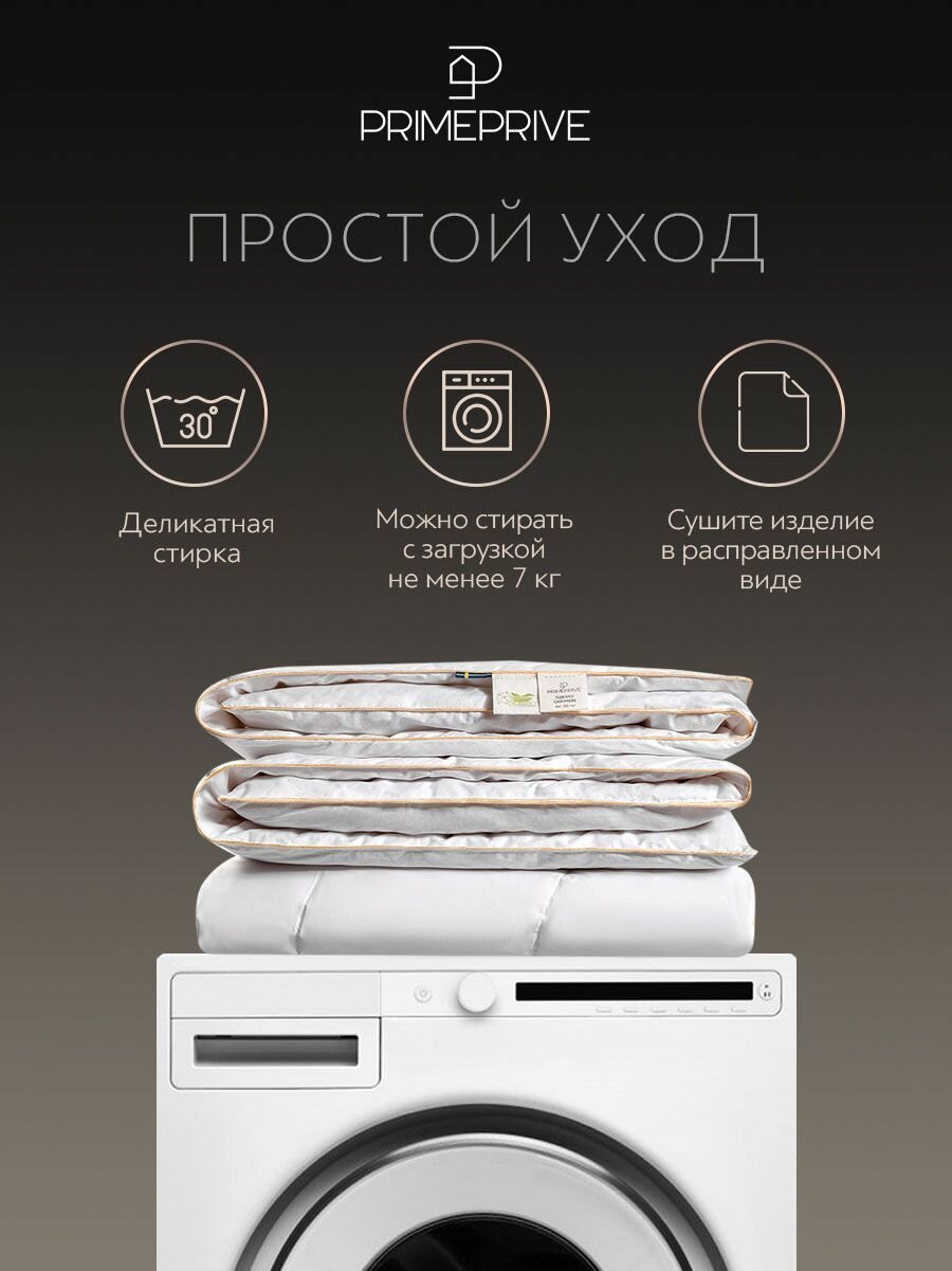 PRIME PRIVE Одеяло полуторное, всесезонное "Bamboo" теплое 240 г/м2, бамбуковое волокно, микроволокно "Climafiber", 140x205