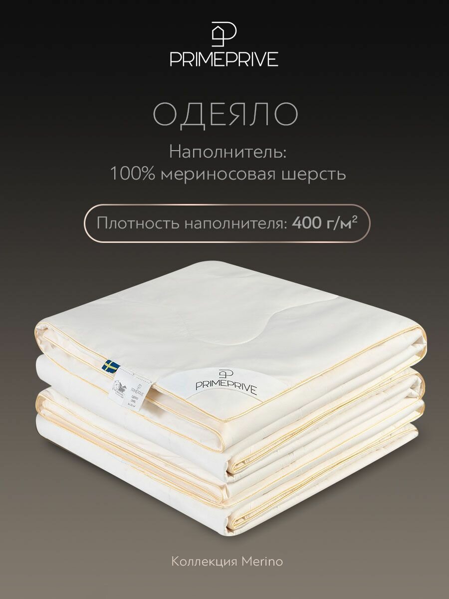 PRIME PRIVE Одеяло полуторное, всесезонное "Merino" облегченное 200 г/м2, мериносовая шерсть, 140x205