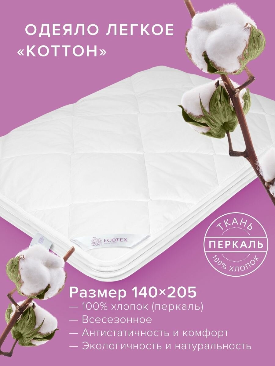 СохранитьОдеяло облегченное Ecotex Коттон 1,5 спальное 140X205 интересное: