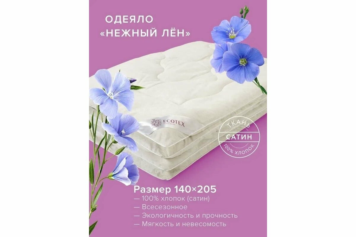 Одеяло лён 1,5-спальное (140x205 см) "Нежный лен", чехол - сатин (100% хлопок), Ecotex