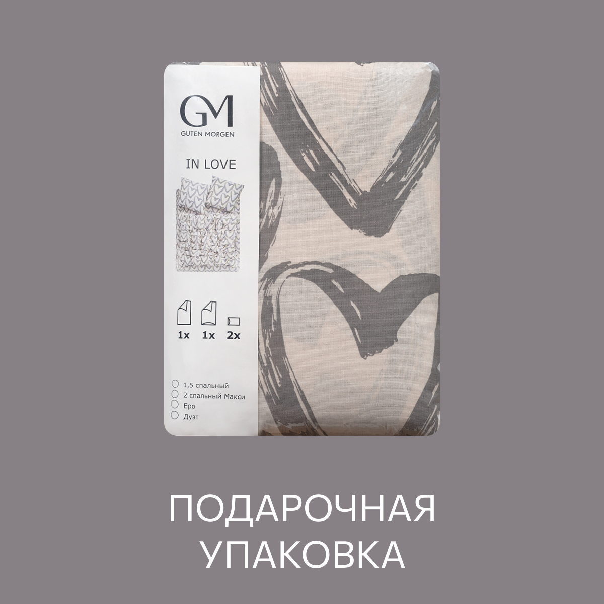 Комплект постельного белья, Бязь, Guten Morgen, 1.5 спальный с нав. 70х70, рис. In love