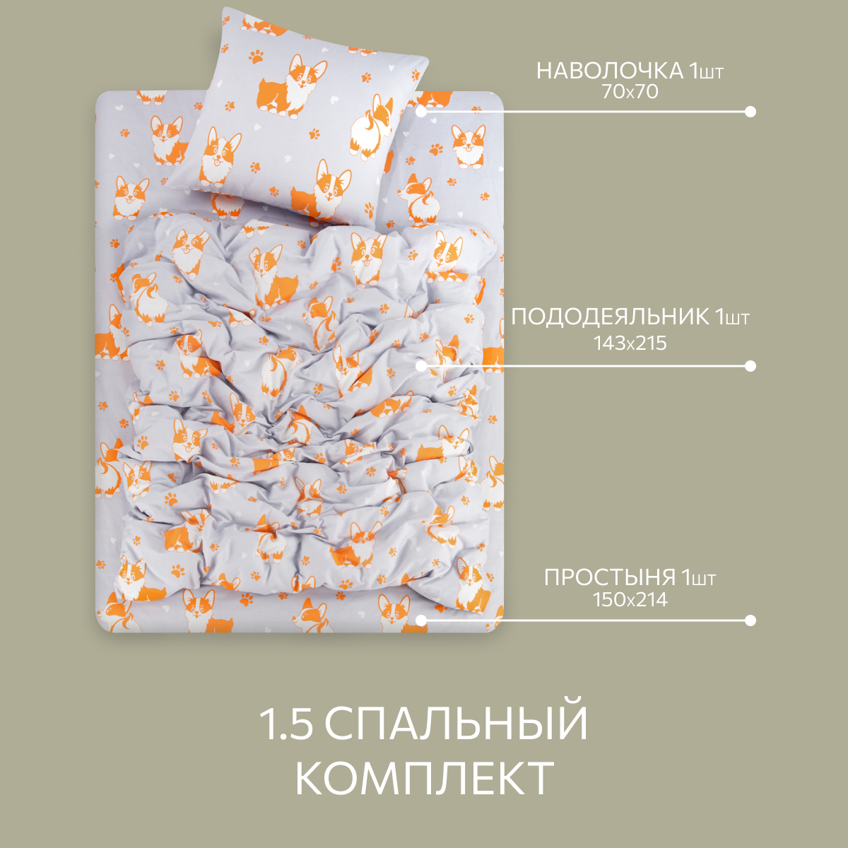 СохранитьПостельное белье, Бязь, 1.5 спальное, 1 наволочка 70х70, GM, Corgi 100% хлопок интересное:
