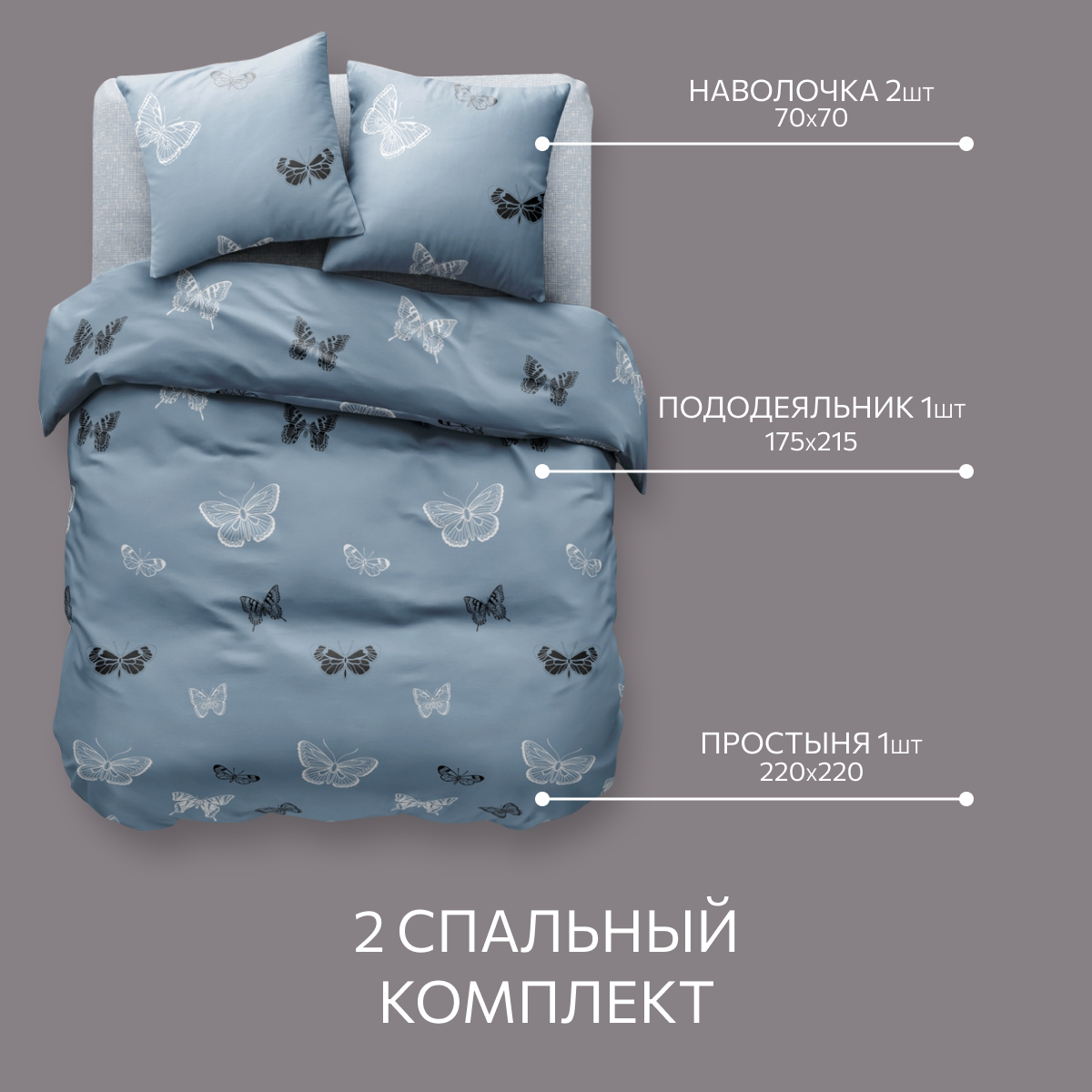 Постельное белье, Бязь, 2х спальное, 2 наволочки 50х70, GM, Black and White Butterflies 100% хлопок