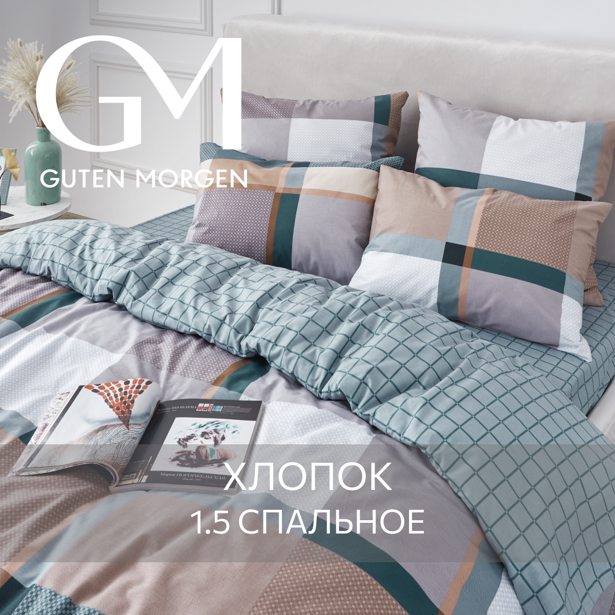 Комплект постельного белья, Guten Morgen, Поплин, 1.5 спальный с нав. 70х70 см