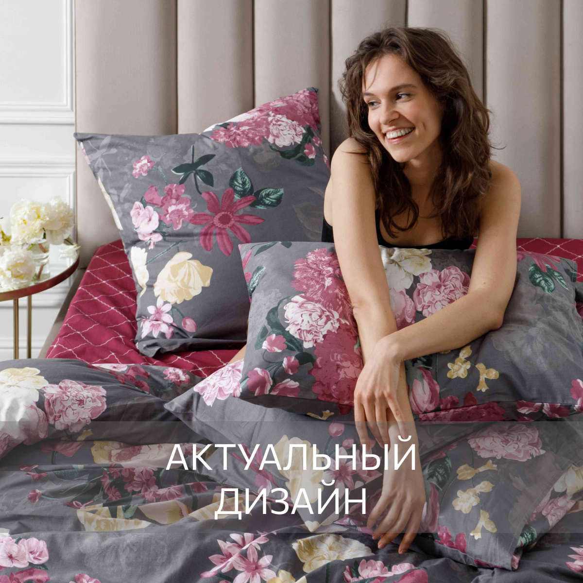 Постельное белье Евро комплект, Поплин, Guten Morgen, Цветочный вальс, 100% хлопок,