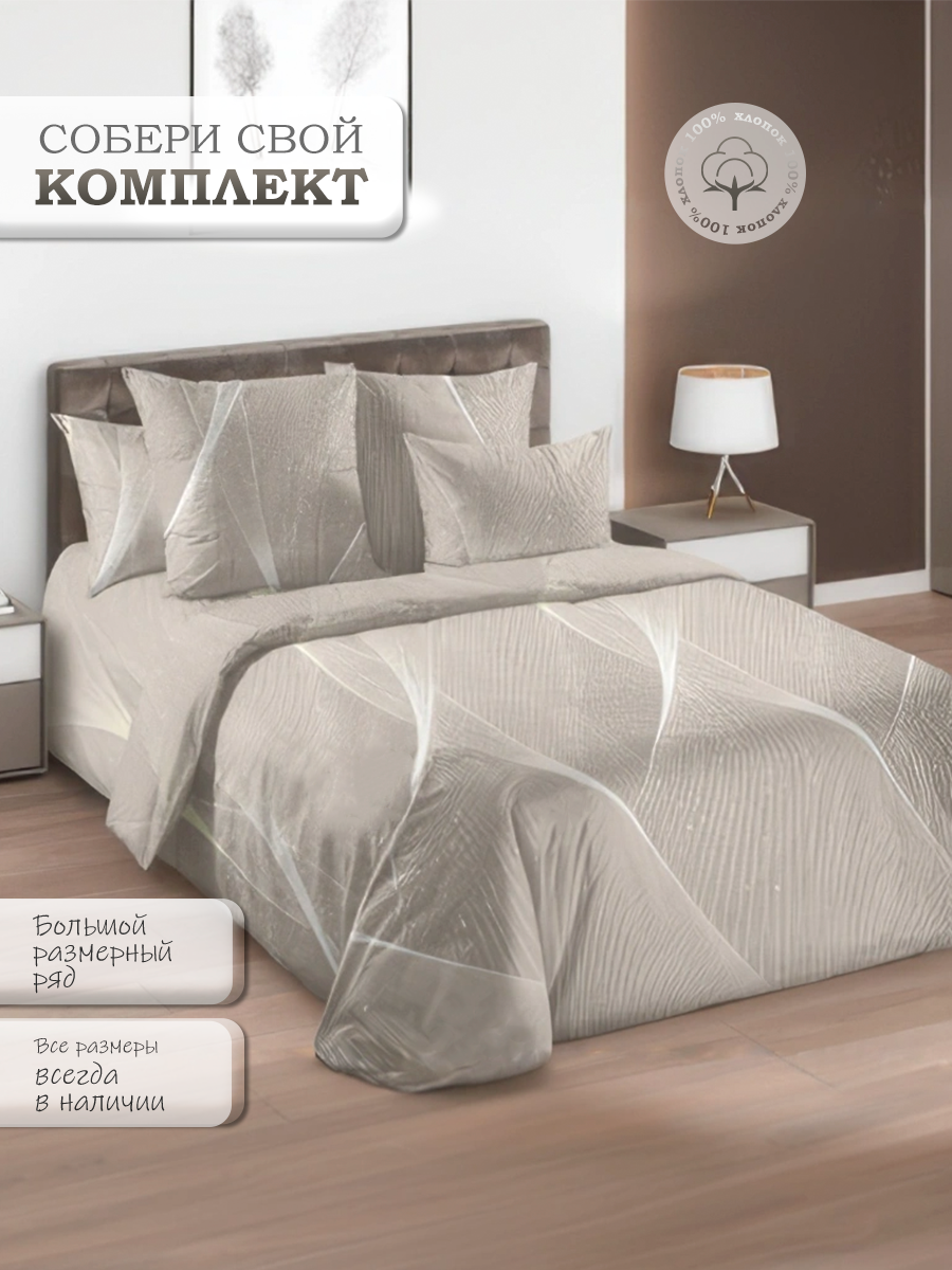 Пододеяльник Абстракция перкаль х/б 100%, 210х210 см, бежевый, плотность 110 г/м,