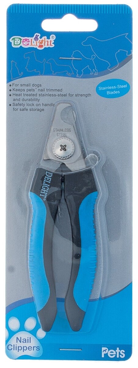Когтерез-секатор для кошек и собак средних пород DeLIGHT большой (L), со стопором, в блистере, синий, черный, 40112L