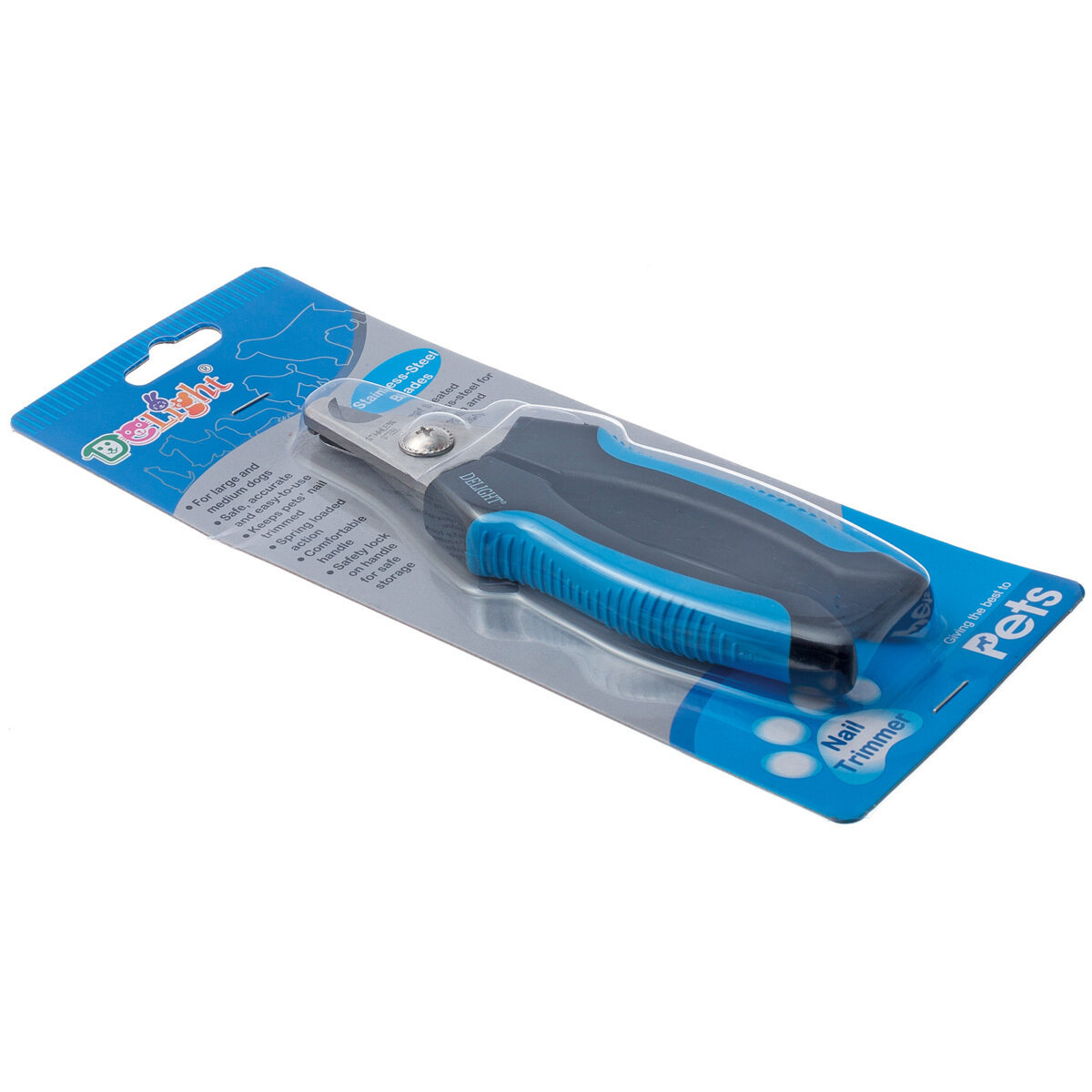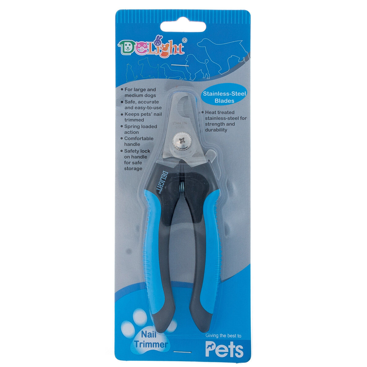 Когтерез-секатор для кошек и собак средних пород DeLIGHT большой (L), со стопором, в блистере, синий, черный, 40112L