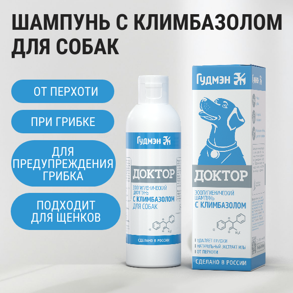 Шампунь Гудмэн "Доктор" для собак с климбазолом, от грибка, 200мл интересное: