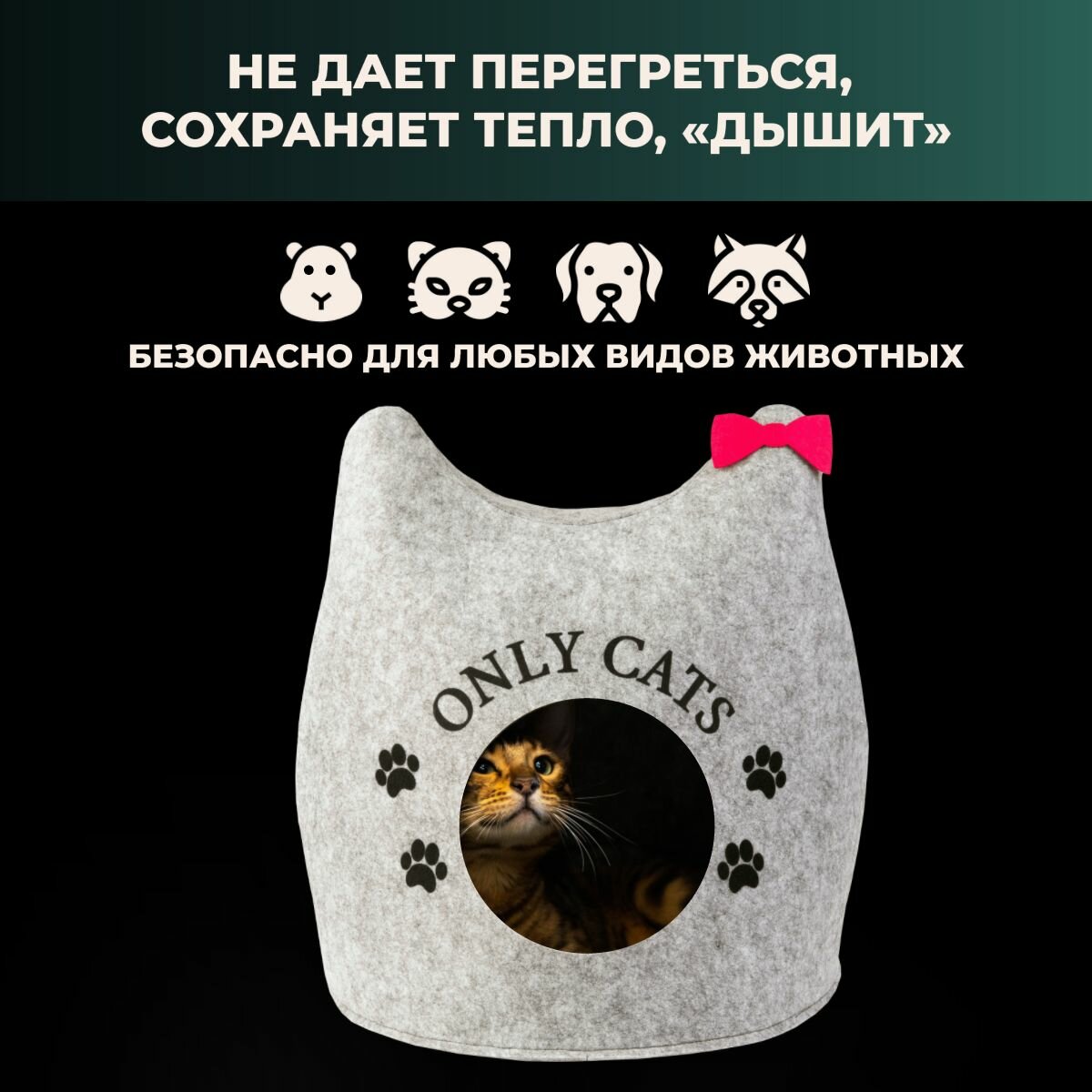 СохранитьДомик для кошек и собак мелких пород, Eva pets, "Ушастик ONLY CATS", мягкий/серый/складной, из войлока интересное: