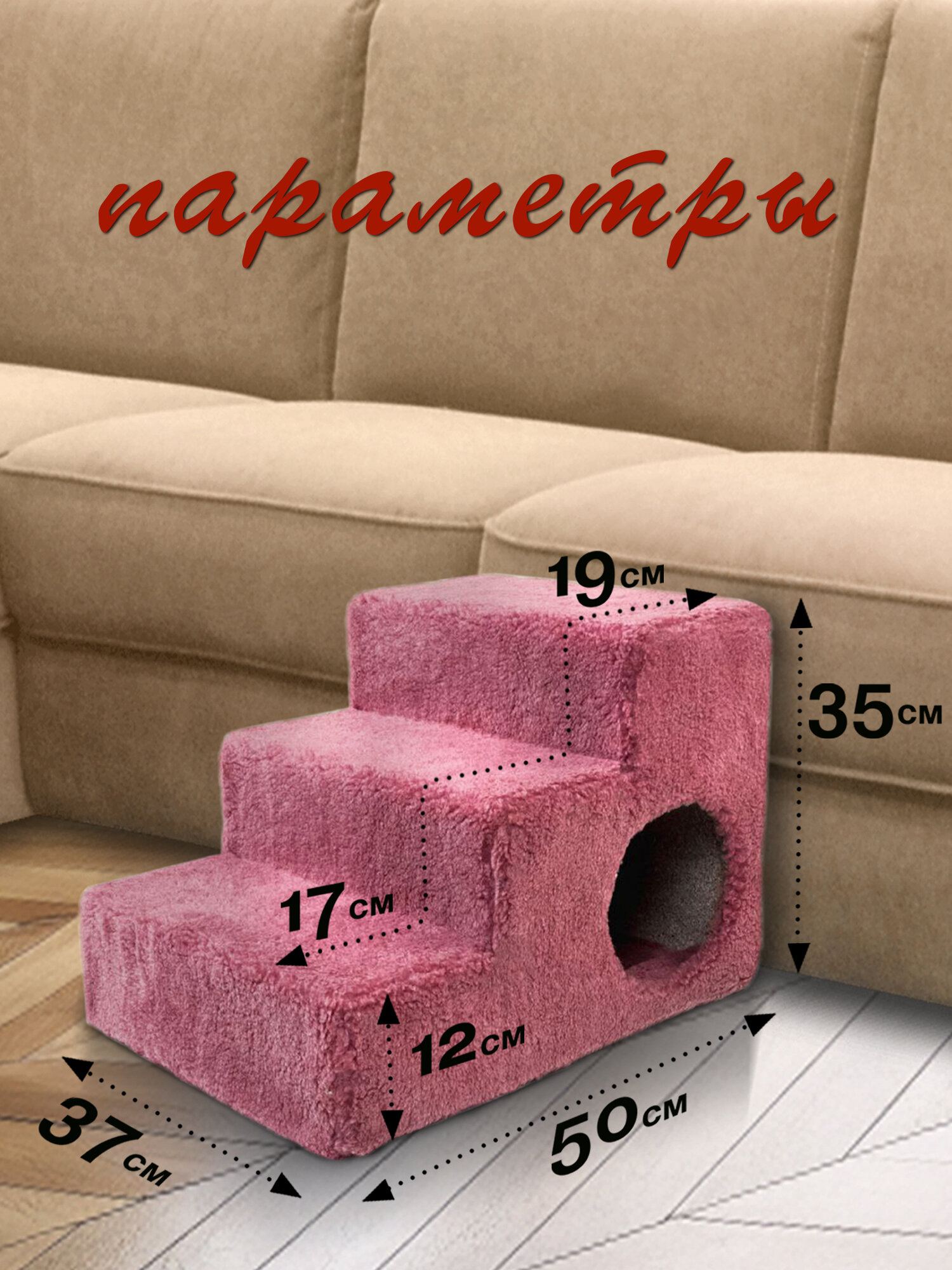 Прикроватная лестница ДобрМир, для кошек и собак, искусственный мех