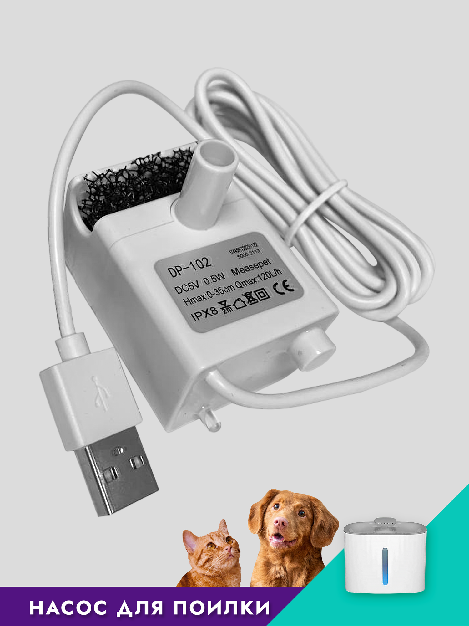 Насос для поилок Pets&Mom, без подсветки, пластик, бесшумный, USB