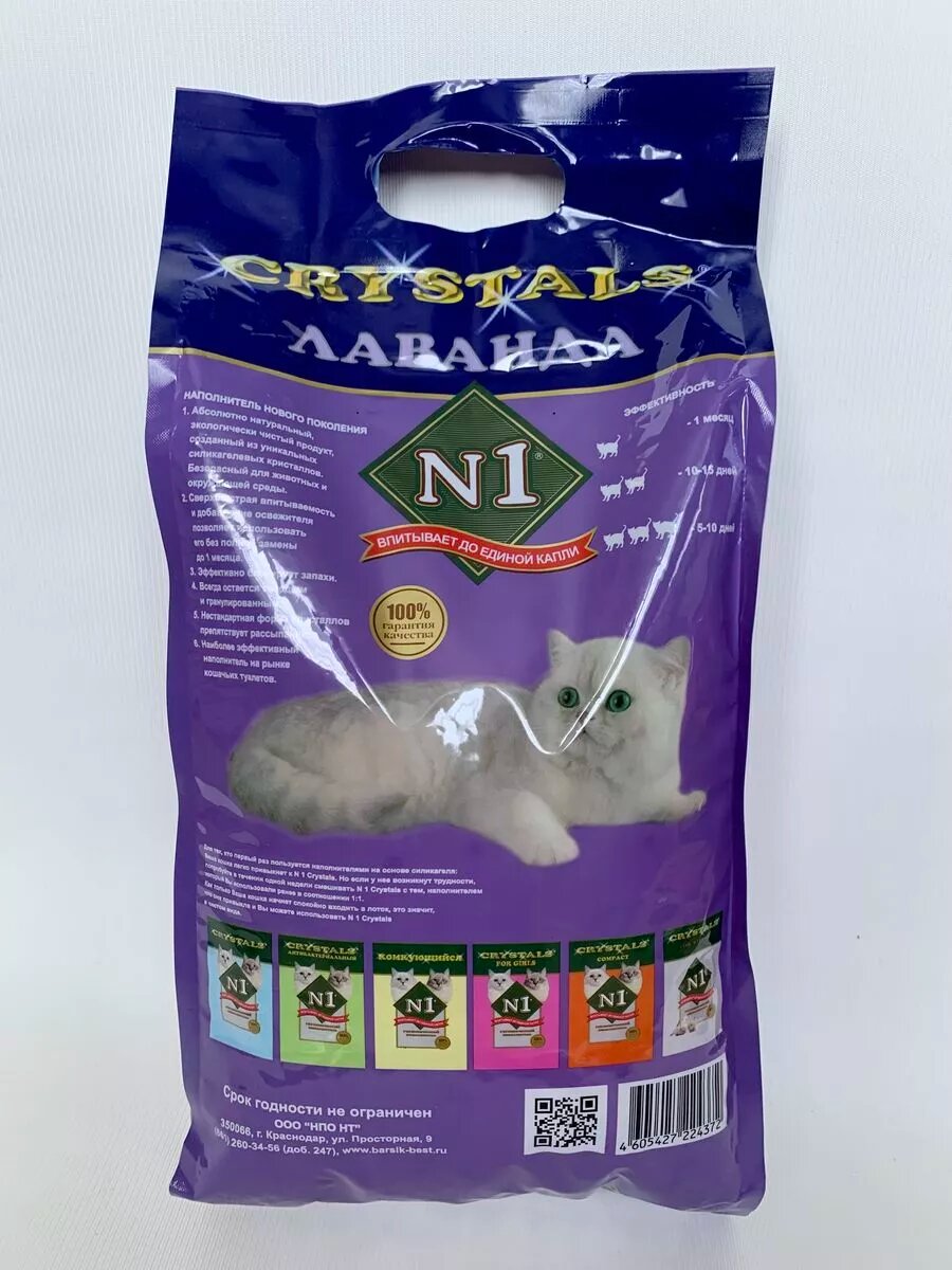 Наполнитель N1 Crystals для кошачьего туалета LAVENDER Силикагель 12,5л (Пакет для лотка В подарок, внутри упаковки)