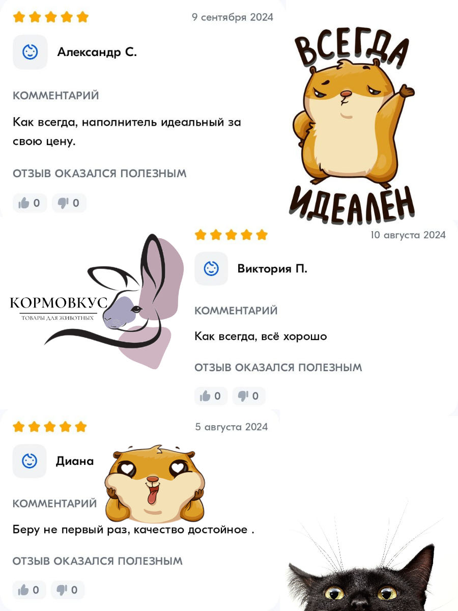 | Вид животного | грызуны / кошки / кролики / птицы / хорьки |