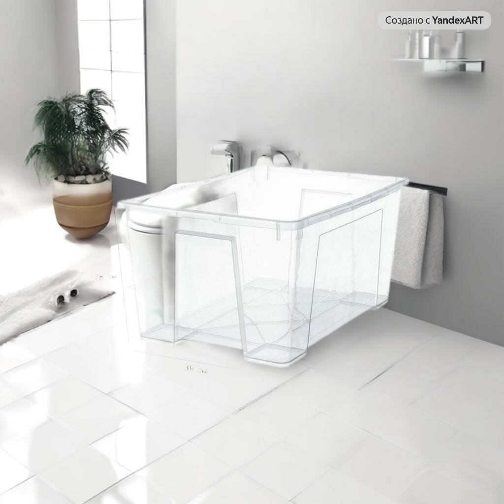 Контейнер для хранения 45 литров, прозрачный, прямоугольный, пластиковый, без крышки