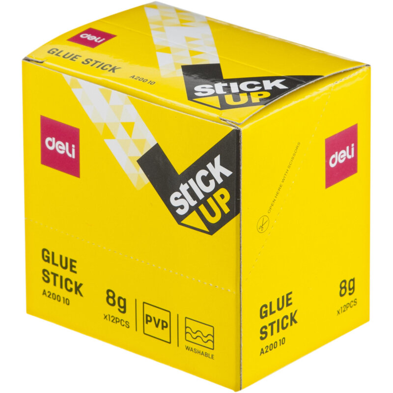 | Дополнительная информация | Клей-карандаш Deli Stick UP EA20010 8 гр корпус желтый, ПВП, дисплей картон, усиленный.Упаковка 12 шт. |