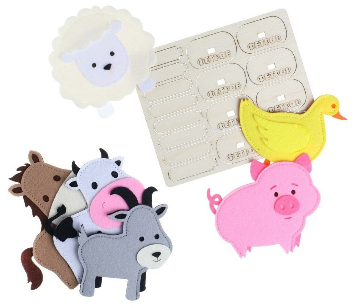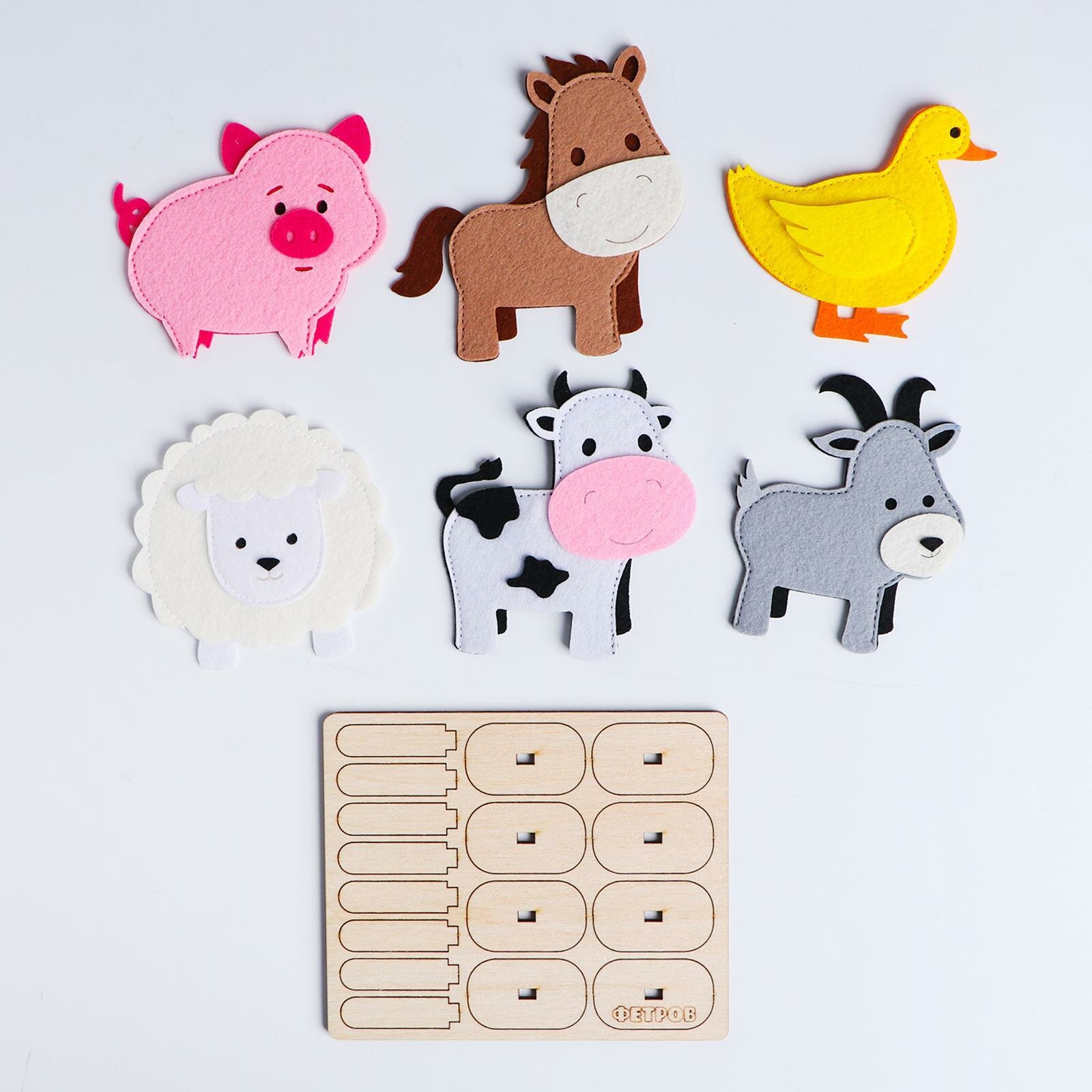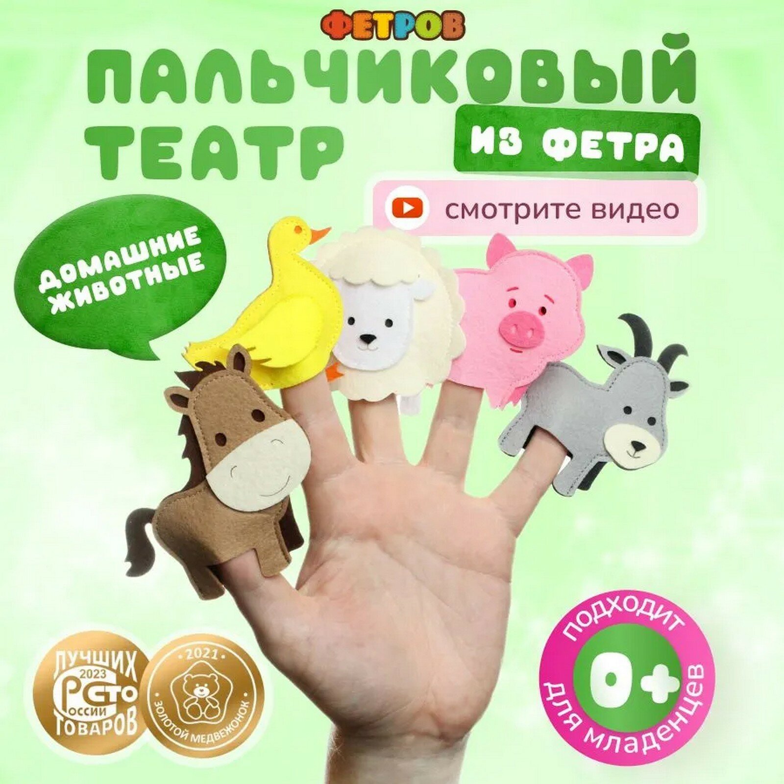 Пальчиковый театр. Домашние обитатели-1 (6 фигурок, 8 подставок, фетр, дерево, в пакете, от 0 лет) 1101001, (ООО "Фетров")