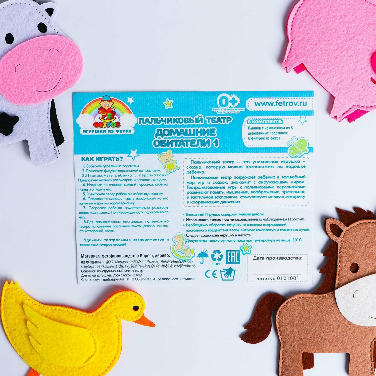 Пальчиковый театр. Домашние обитатели-1 (6 фигурок, 8 подставок, фетр, дерево, в пакете, от 0 лет) интересное: