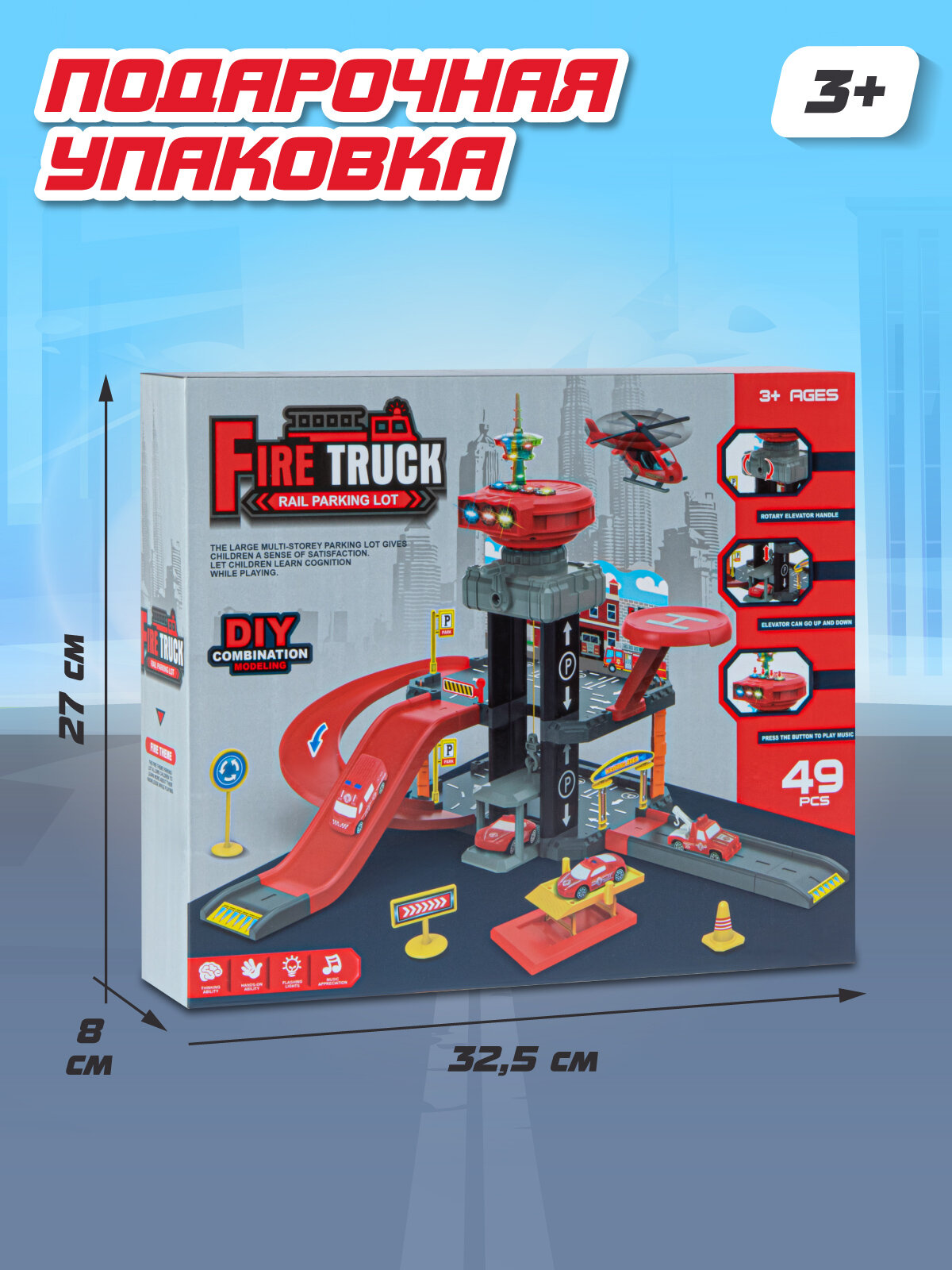 Парковка "Пожарная" с лифтом/ручной механизм, в комплекте машинки/вертолет, свет, звук, JB0405298 интересное: