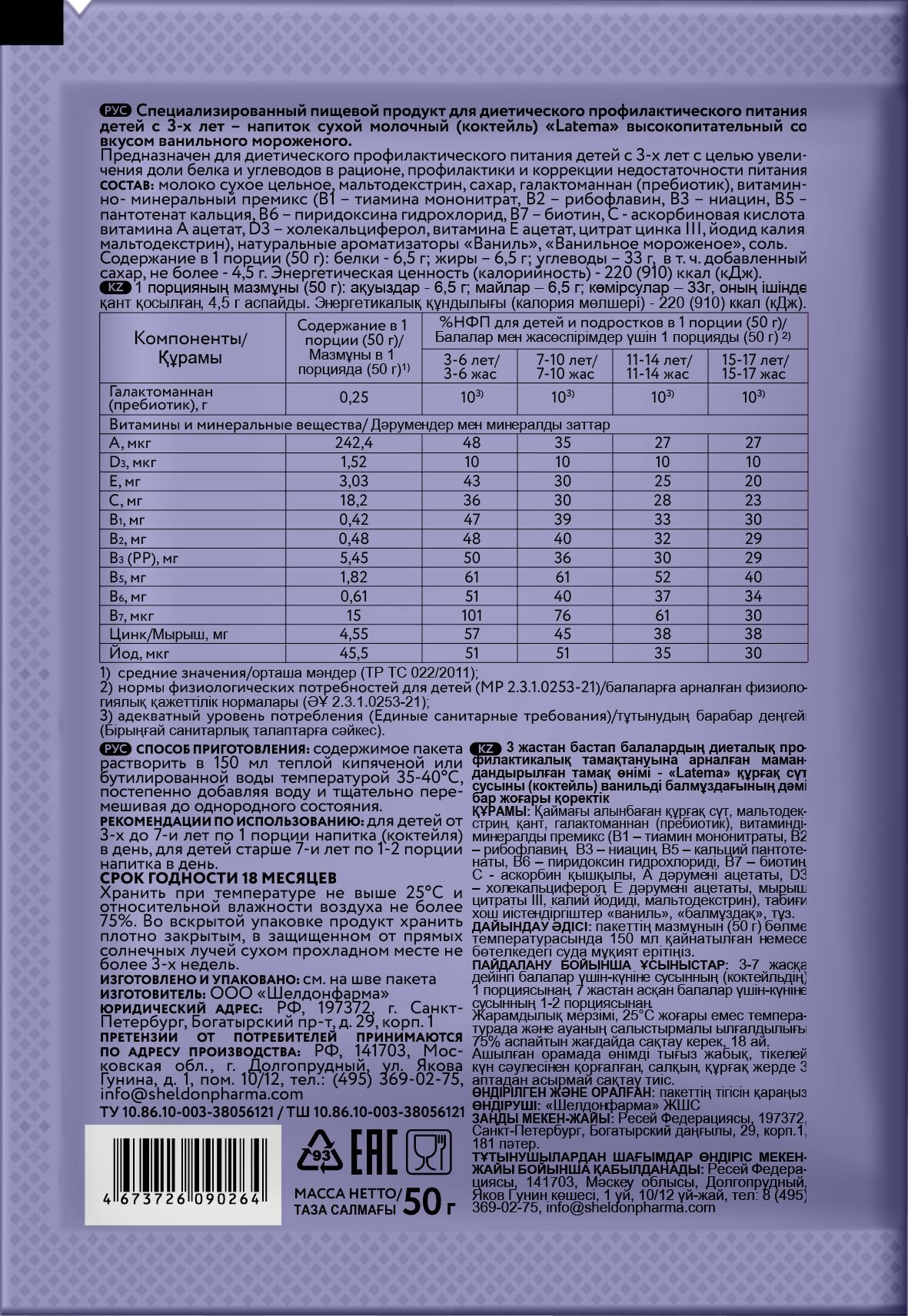 Молочная смесь детская, Латема, ваниль 5 шт. по 50 г интересное:
