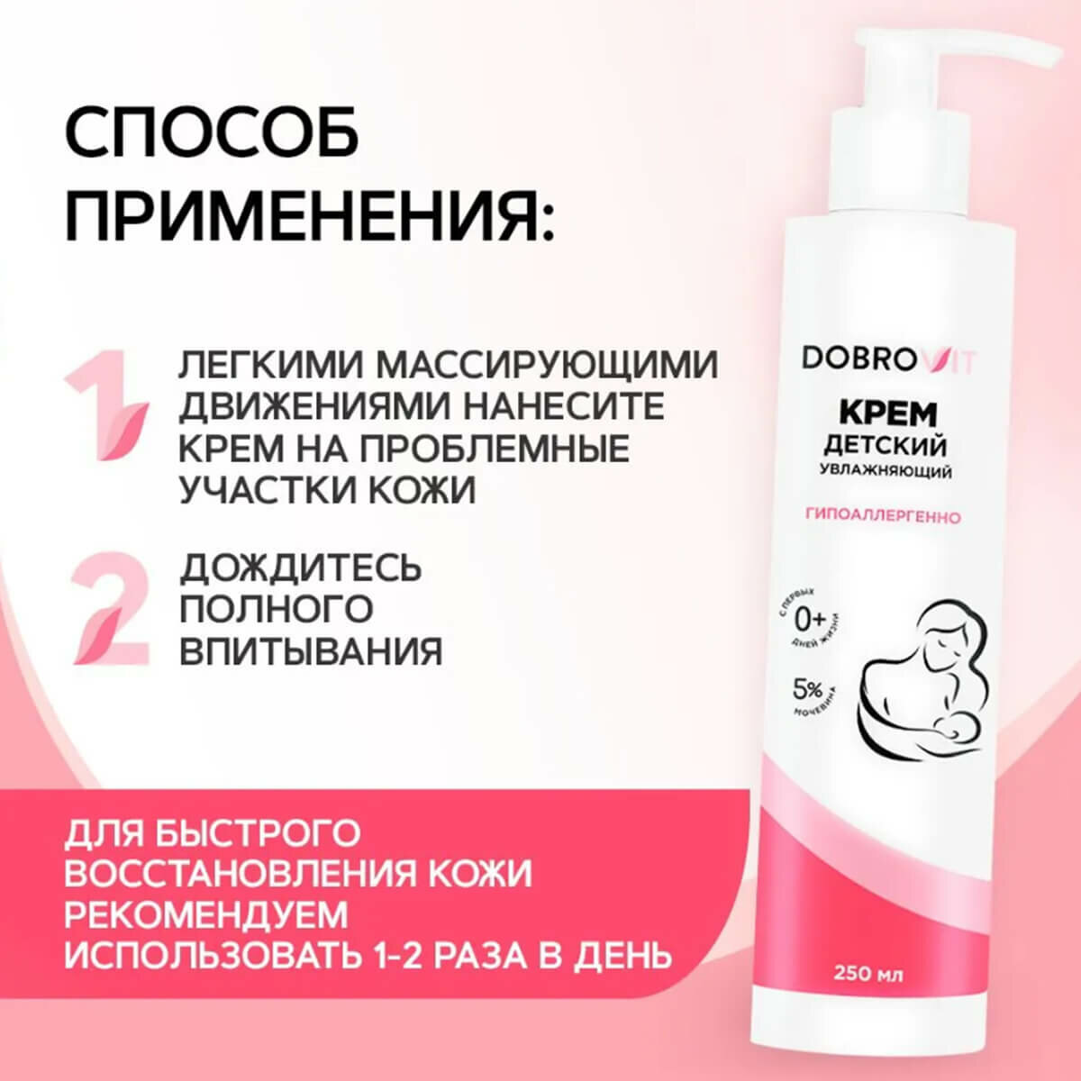 DOBROVIT Детский крем увлажняющий, для новорожденных, питательный от молочных корочек, 250 мл