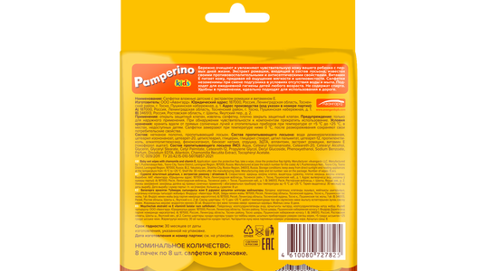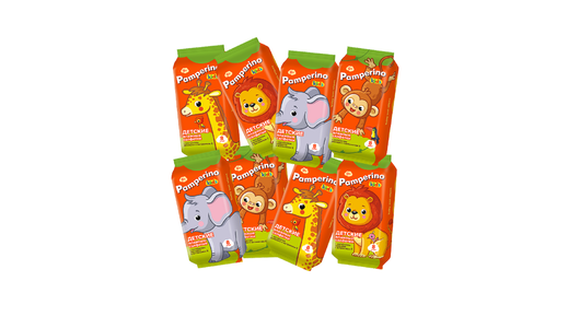 Салфетки влажные детские, Pamperino, 8 пачек в упаковке по 8 шт, в ассортименте интересное: