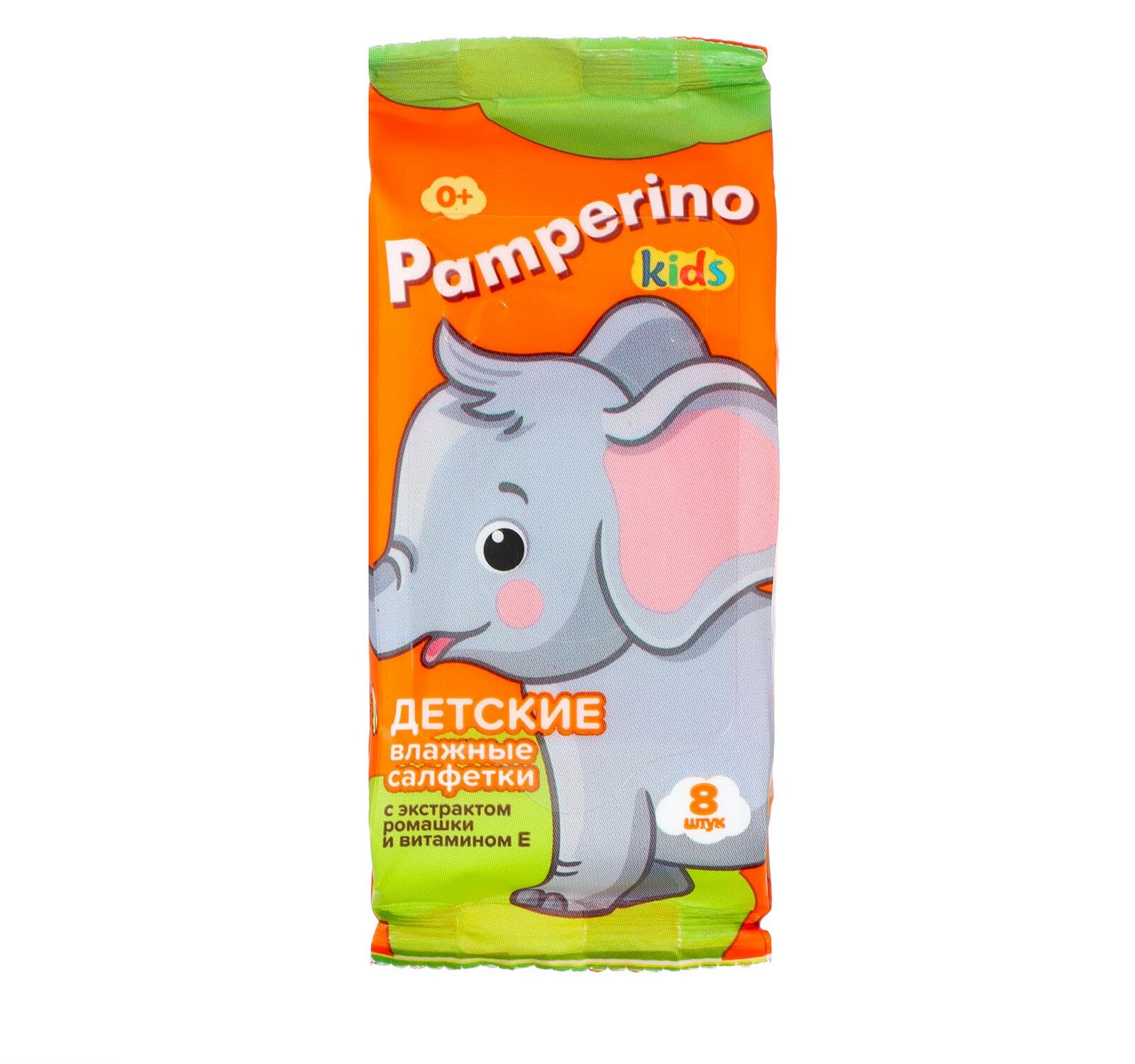 Салфетки влажные Pamperino kids с экстрактом ромашки и витамином Е, набор 8 упаковок по 8 штук