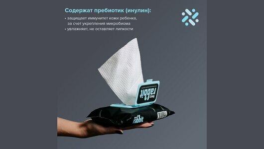 Влажные салфетки детские суперпрочные, с пребиотиками FANCY RABBIT, 25 шт. интересное: