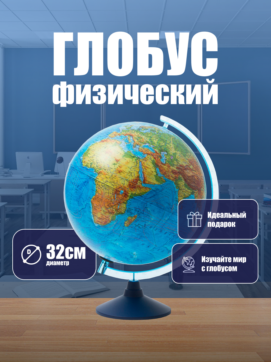 | Подробная комплектация | Глобус физический диаметр 32 см Классик Евро рельефный |