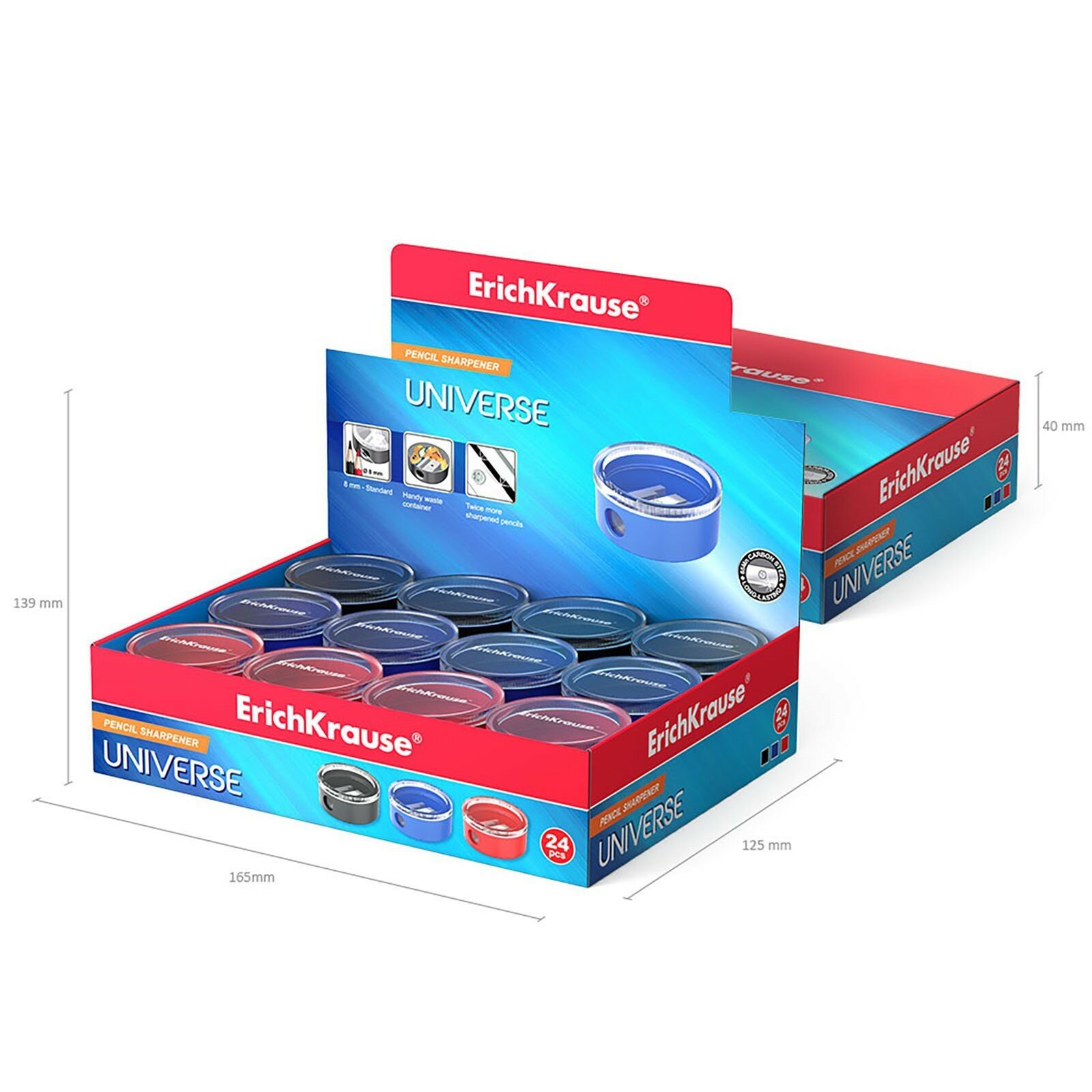 Купить Точилка ручная пластиковая Erich Krause Universe (1 отверстие, с контейнером, круглая, разные цвета) (21828), 1шт.