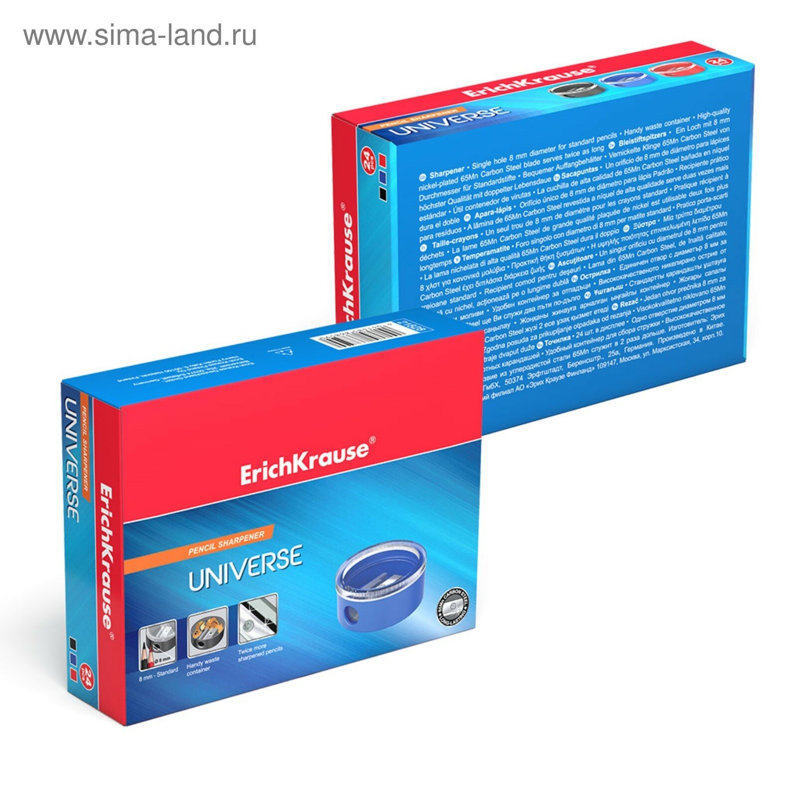 Точилка ручная пластиковая Erich Krause Universe (1 отверстие, с контейнером, круглая, разные цвета) (21828), 1шт. интересное: