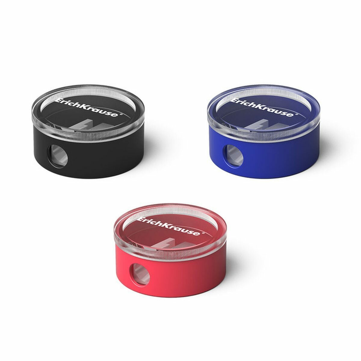 Точилка ручная пластиковая Erich Krause Universe (1 отверстие, с контейнером, круглая, разные цвета) (21828)
