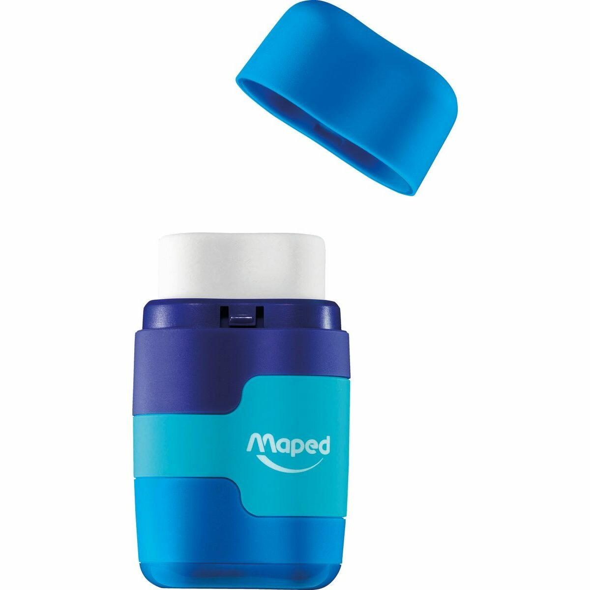 Купить Точилка ручная пластиковая с ластиком Maped Connect 2-в-1 (2 отверстия, с контейнером, инд. ШК), 1шт.