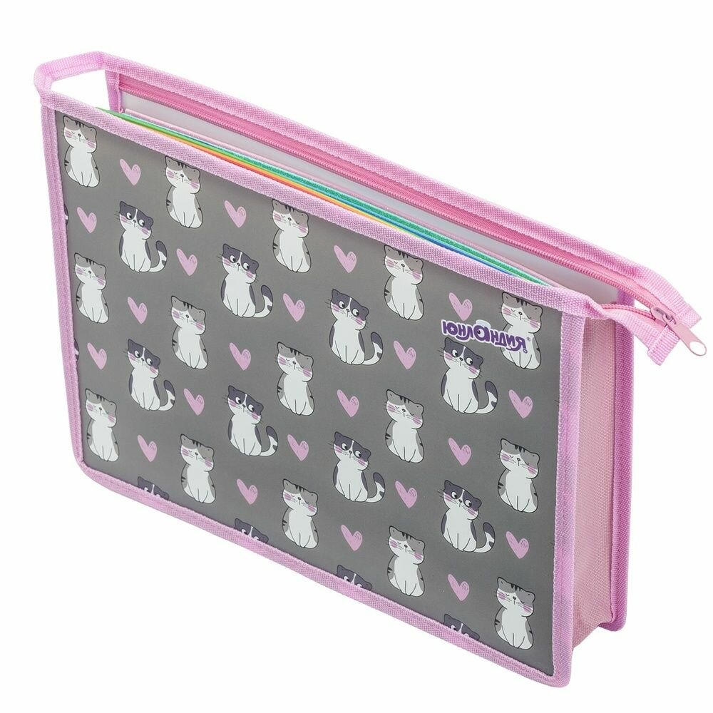 Папка для тетрадей Юнландия А4, 1 отделение, пластик, на молнии, Sweet whiskers, 272137