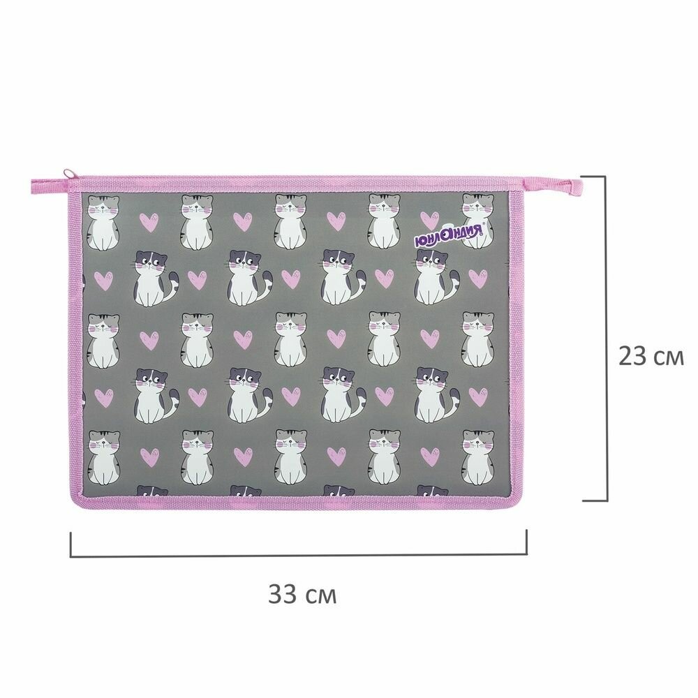 Купить Папка для тетрадей на молнии Юнландия А4, 1 отделение, пластик, "Sweet whiskers"