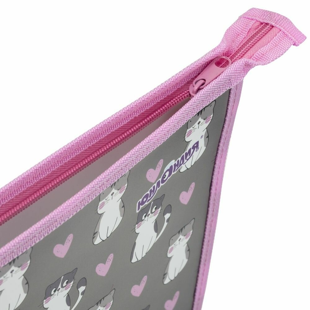 Папка для тетрадей, труда, рисования и изо А4 для девочек на молнии с ручками, канцелярия для школы, 1 отделение пластик 45 мм, Юнландия Cat gang, 272148