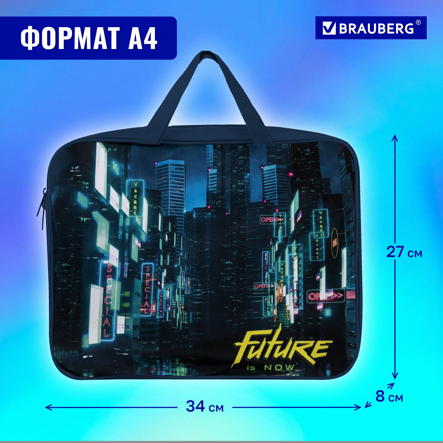 Папка на молнии с ручками BRAUBERG А4, 1 отделение, полиэстер, ширина 80 мм, "Future", 270965