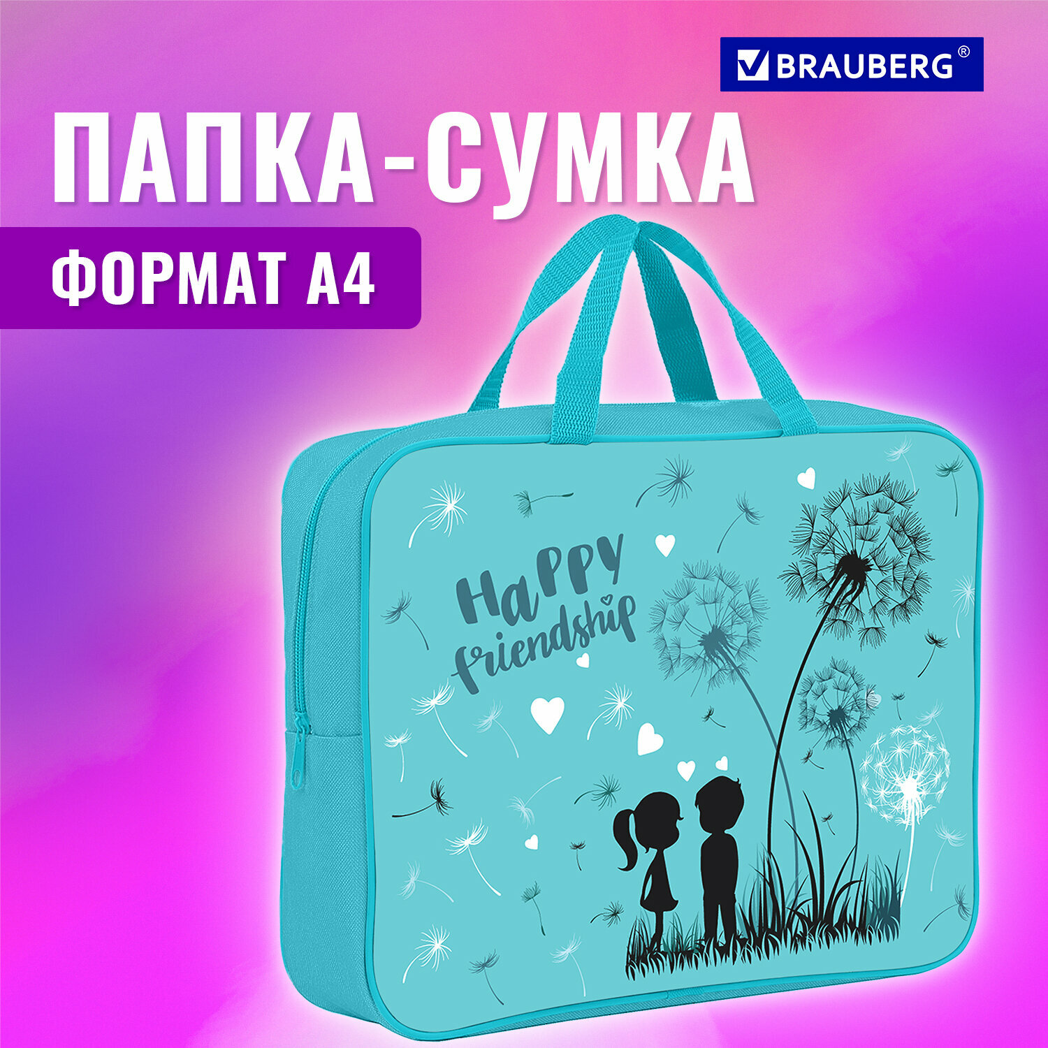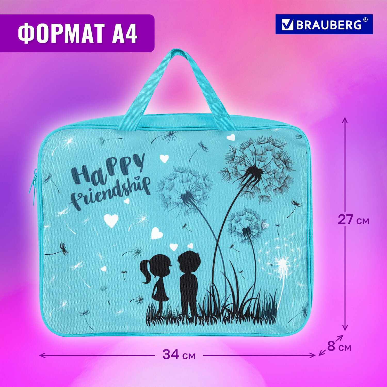 Папка на молнии с ручками BRAUBERG А4, 1 отделение, полиэстер, ширина 80 мм, "Happy friendship", 270958