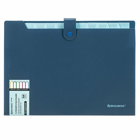 Папка-органайзер на кнопке 12 отделений, Brauberg Extra, А4, синяя с голубым, 271933
