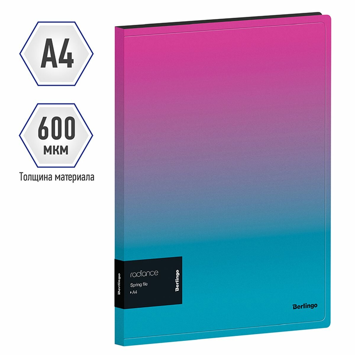 Купить Папка-скоросшиватель с пружинным механизмом Berlingo Radiance (А4, 17мм, 600мкм, с внутр. карманом) розовый/голубой градиент (FS4_17002), 24шт.