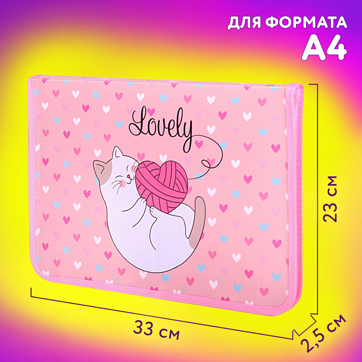 Купить Папка для труда на молнии юнландия А4, 1 отделение, откидная планка, органайзер, "Fluffy cat", 270982