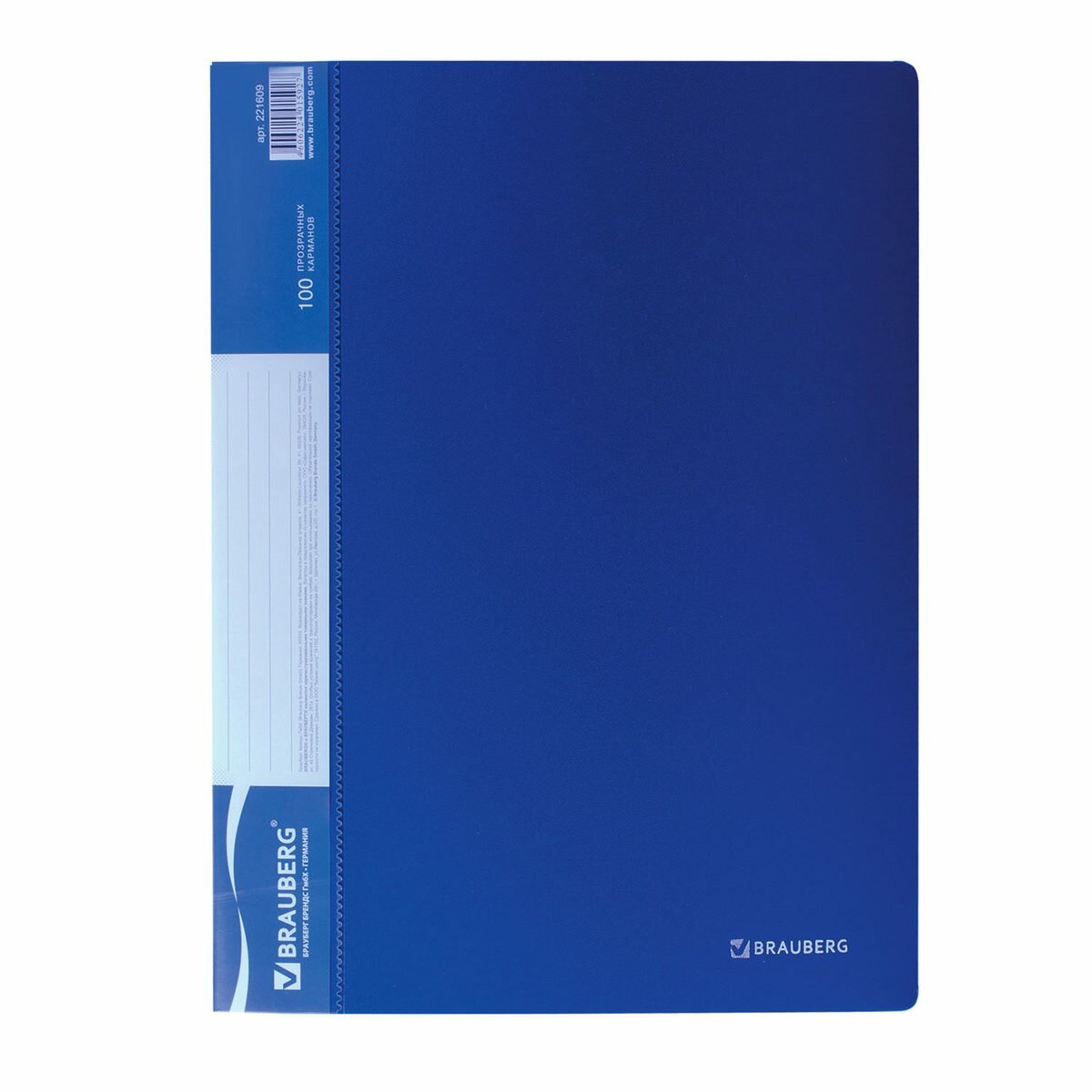 Папка для документов и бумаг канцелярская 100 файлов-вкладышей Brauberg стандарт, синяя, 0,9 мм, 221609