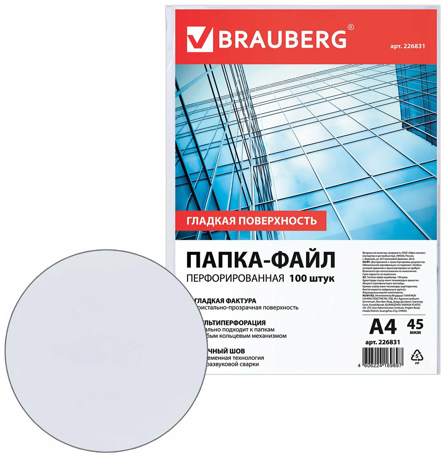 Папки-файлы перфорированные, А4, BRAUBERG, комплект 100 шт, гладкие, 45 мкм, 226831 интересное: