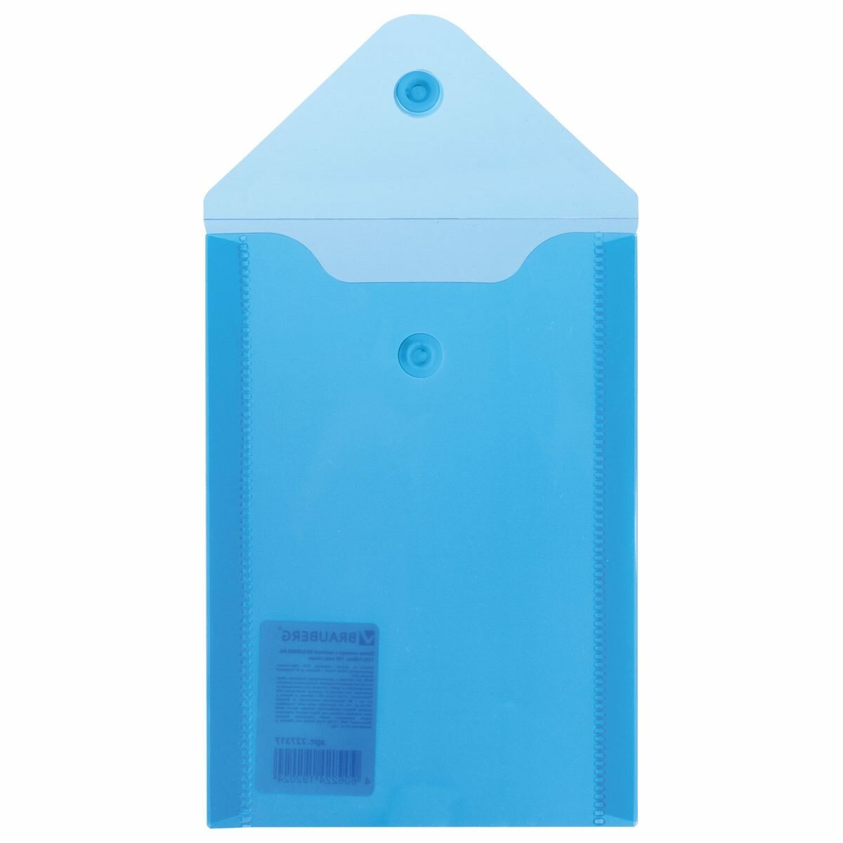 Купить Папка-конверт на кнопке Brauberg (А6, 105х148мм, 180мкм, пластик) синяя (227317), 10шт.