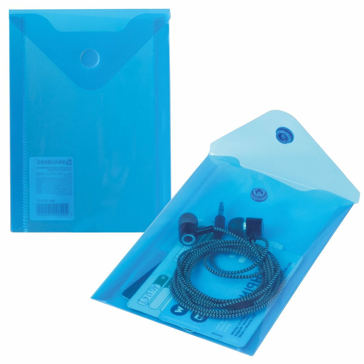 СохранитьПапка-конверт на кнопке Brauberg (А6, 105х148мм, 180мкм, пластик) синяя (227317), 10шт. интересное: