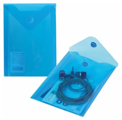 Папка-конверт на кнопке Brauberg (А6, 105х148мм, 180мкм, пластик) синяя (227317), 10шт.